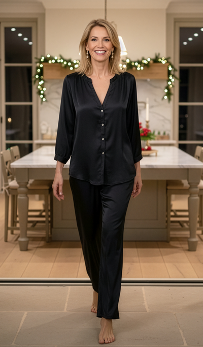 Jamie / Angela Sleep Set - Black Poly Satin
