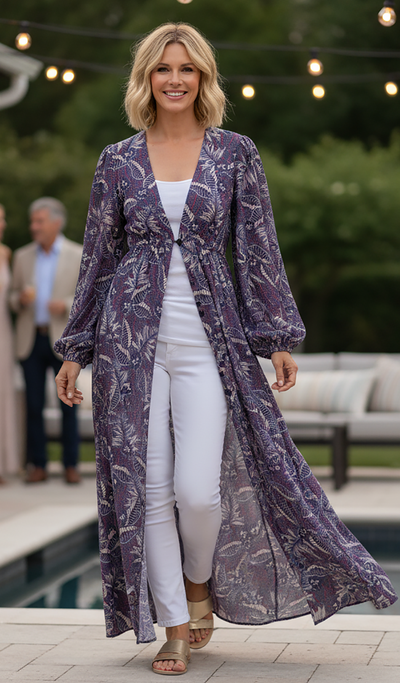 Stacey Caftan - Navy Cotton Bubble Gauze