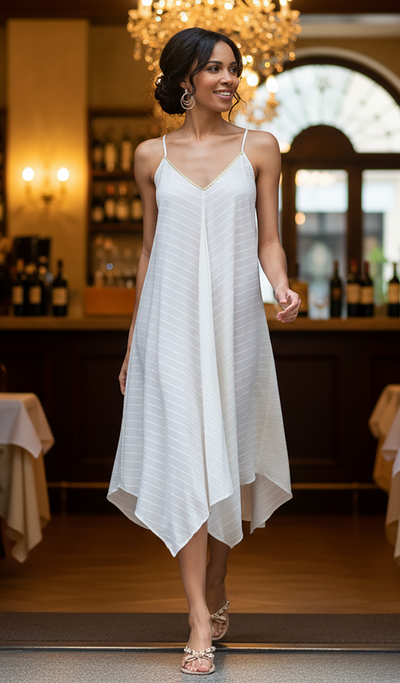 Hazel Nightgown - Coconut Shimmer Striped Cotton Lurex