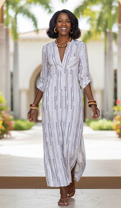 Tracey Caftan - Coconut Shimmer Striped Cotton Lurex