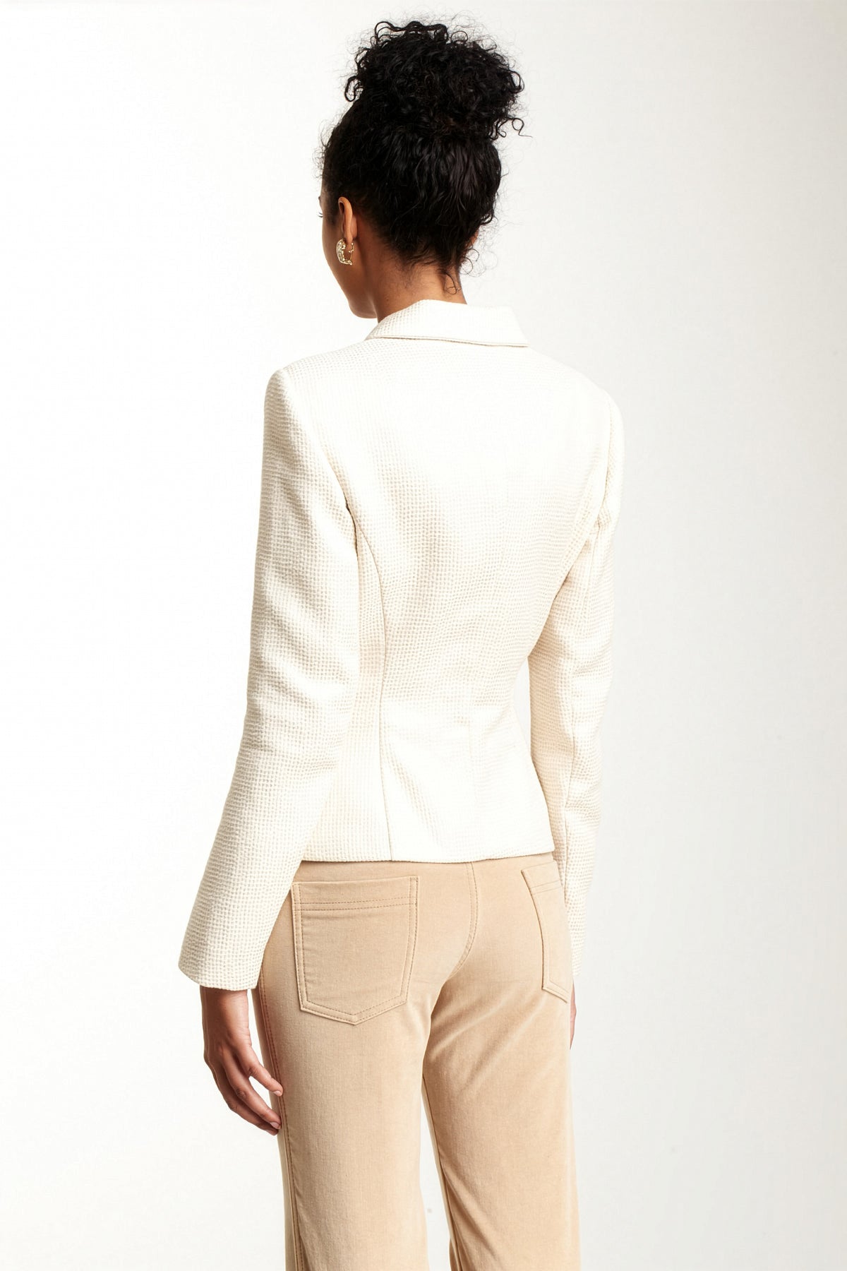 Shine on the job with a brocade blazer with metallic details. Or dress it up for evening drinks with friends.
