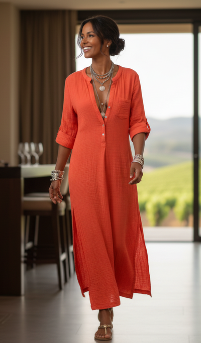 Tracey Caftan - Papaya Cotton Bubble Gauze