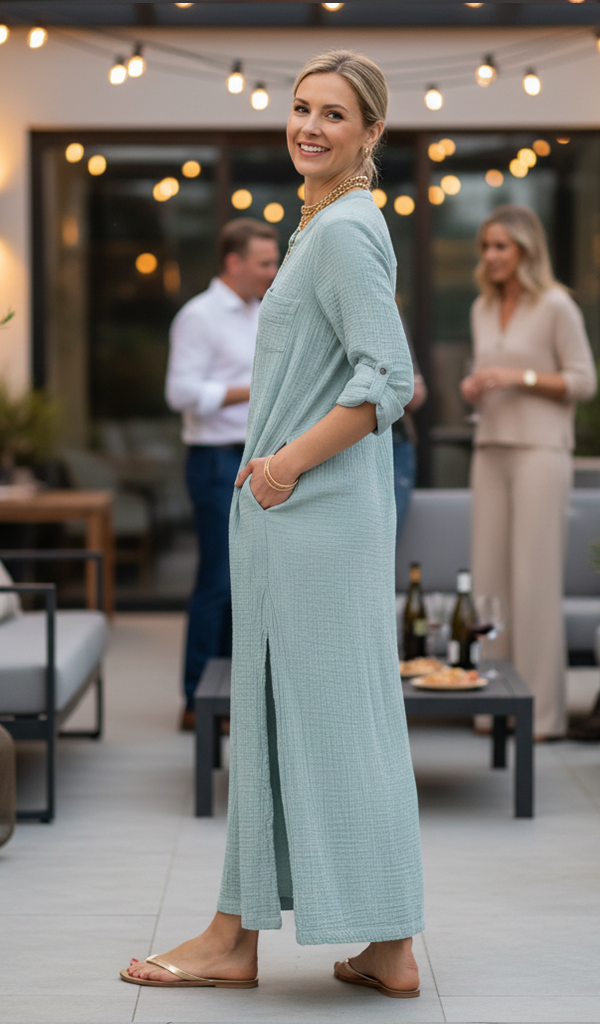 Tracey Caftan - Chalcedony Cotton Bubble Gauze