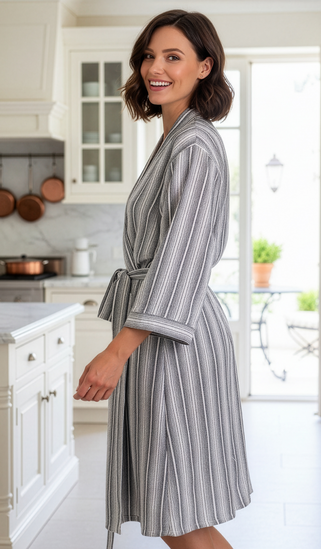 Our Perissa print boasts comfort and class, and the Misty robe can be layered over any sleepwear to add the perfect amount of warmth in the spring and summertime.