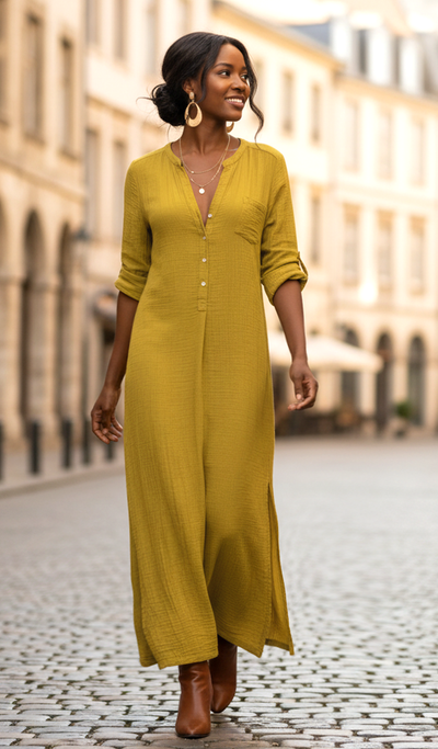 Tracey Caftan - Peridot Cotton Bubble Gauze