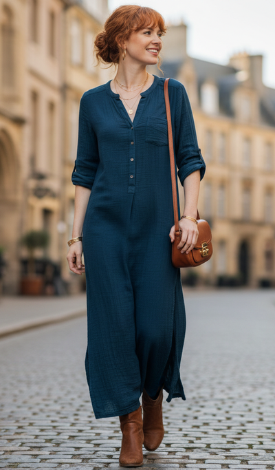 Tracey Caftan - Mediterranean Blue Cotton Bubble Gauze