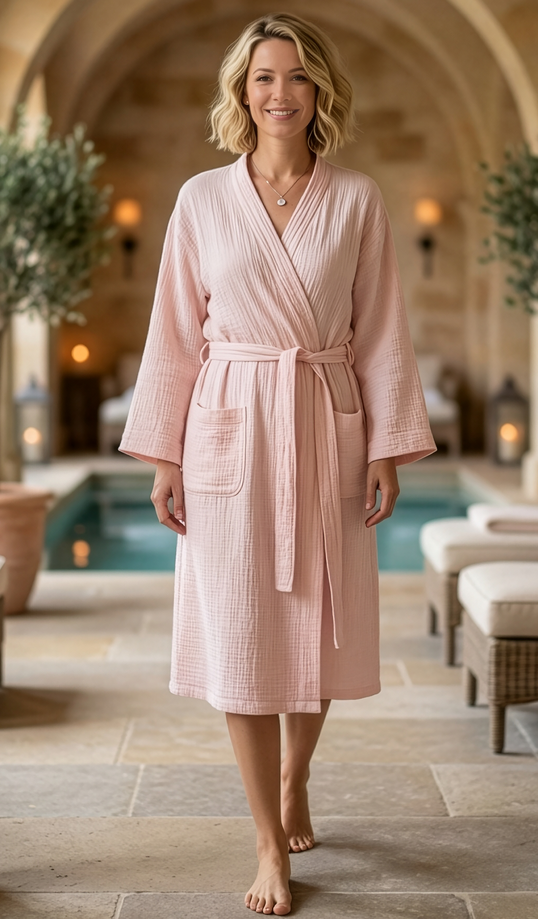 Stay in for the evening wearing this lightweight cotton gauze robe designed in a longline silhouette.