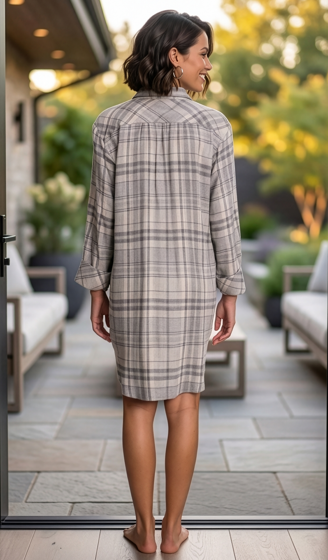 Designed in a longline fit, this cozy flannel plaid button-up with metallic gold threads is soft, comfy and stylish all day, every day!