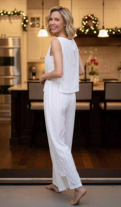 Piper Sleep Set - Coconut Shimmer Striped Cotton Lurex