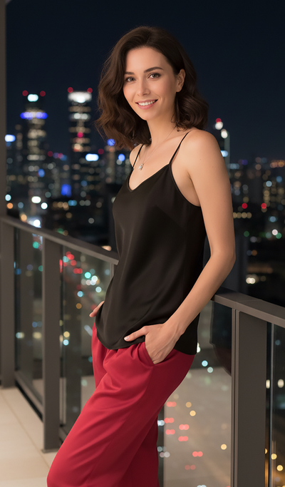 Clearance - Jamie / Angela Sleep Set - Black Poly Satin