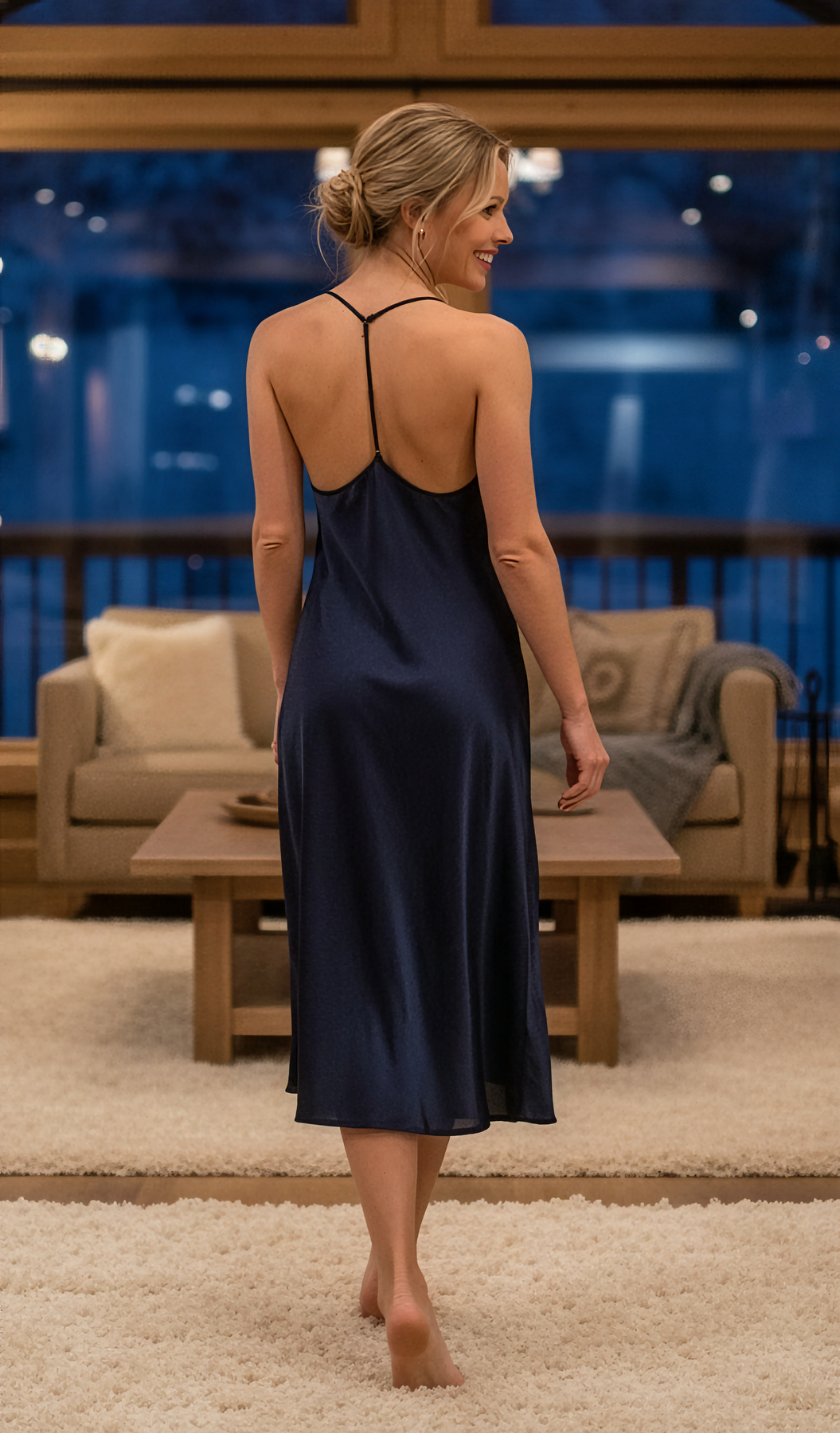 Sloan T-Back Nightgown - Inky Blue Luxury Cotton Sateen