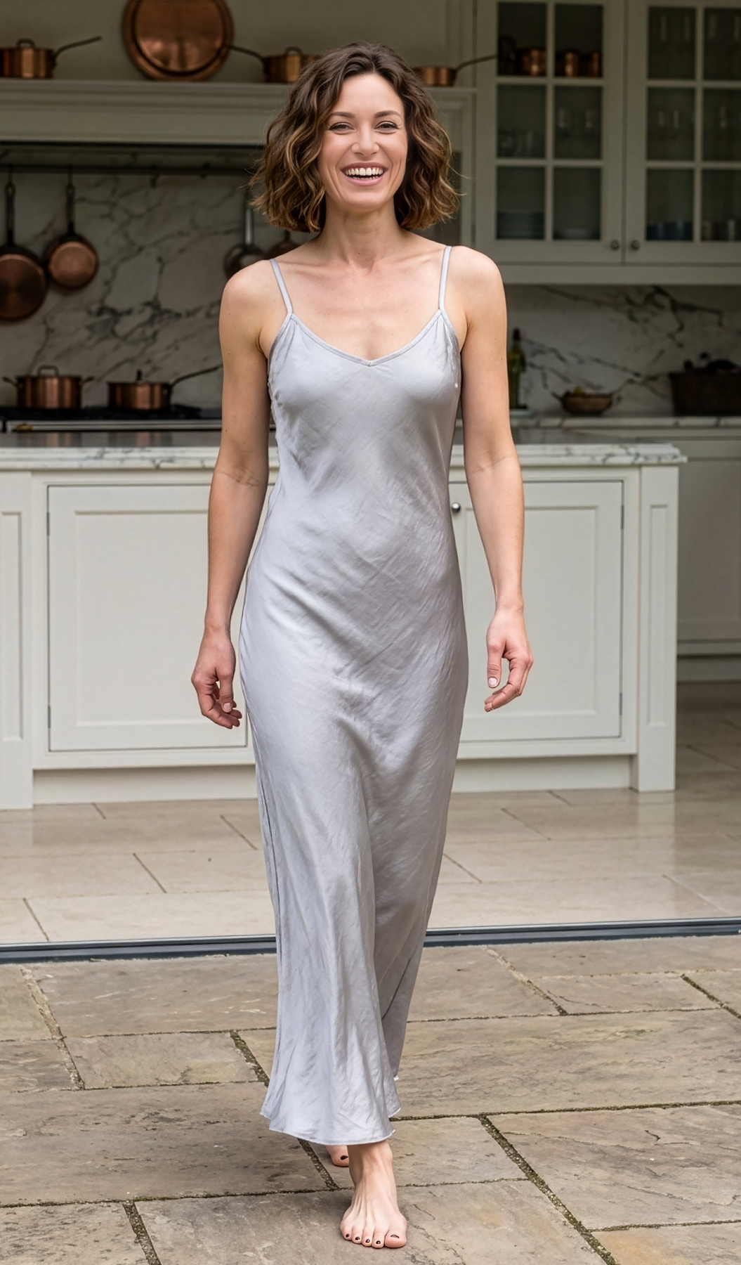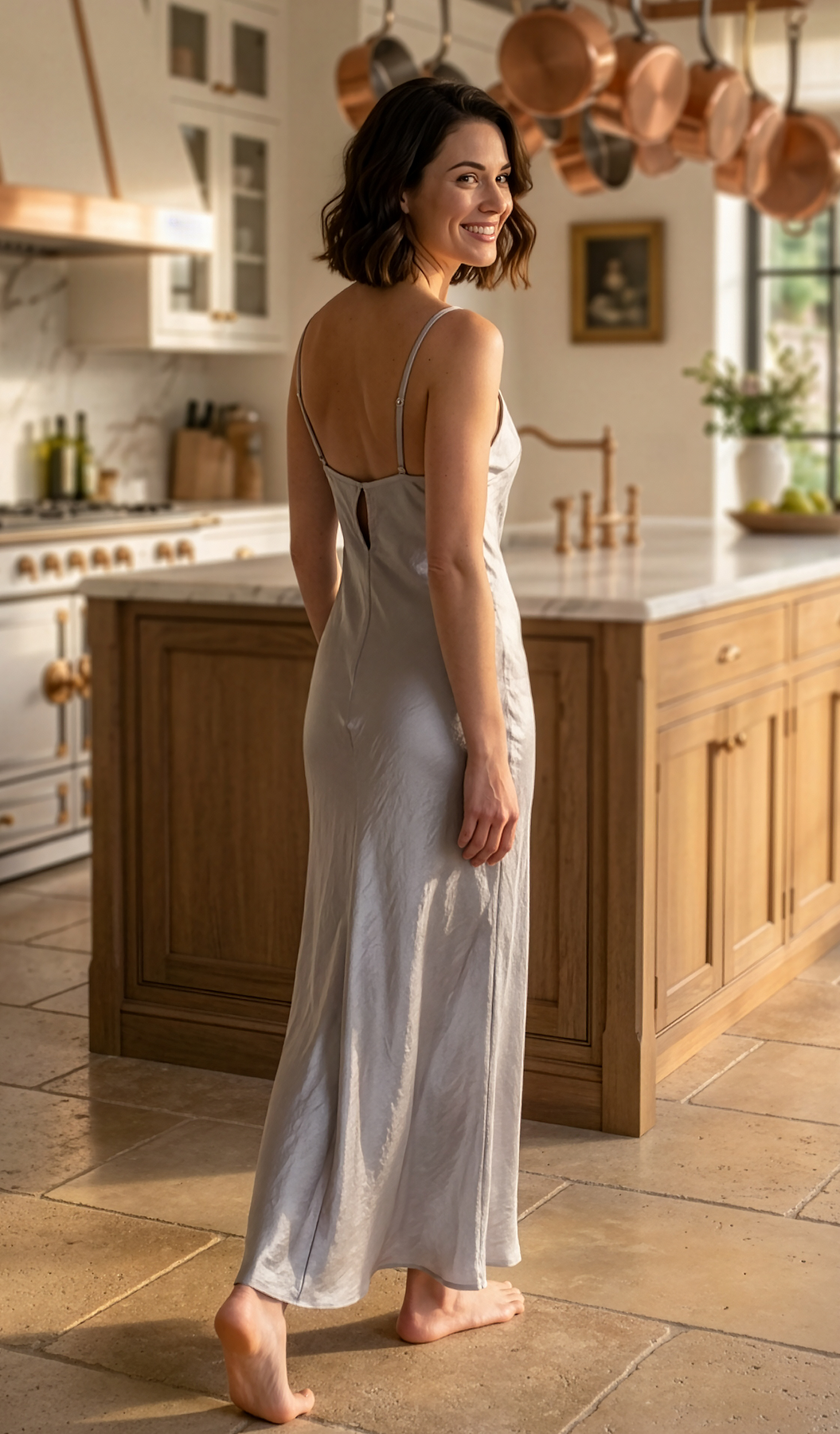 Fall in love with this light, satin nightgown designed in a slinky silhouette (bias cut) with slender adjustable straps.