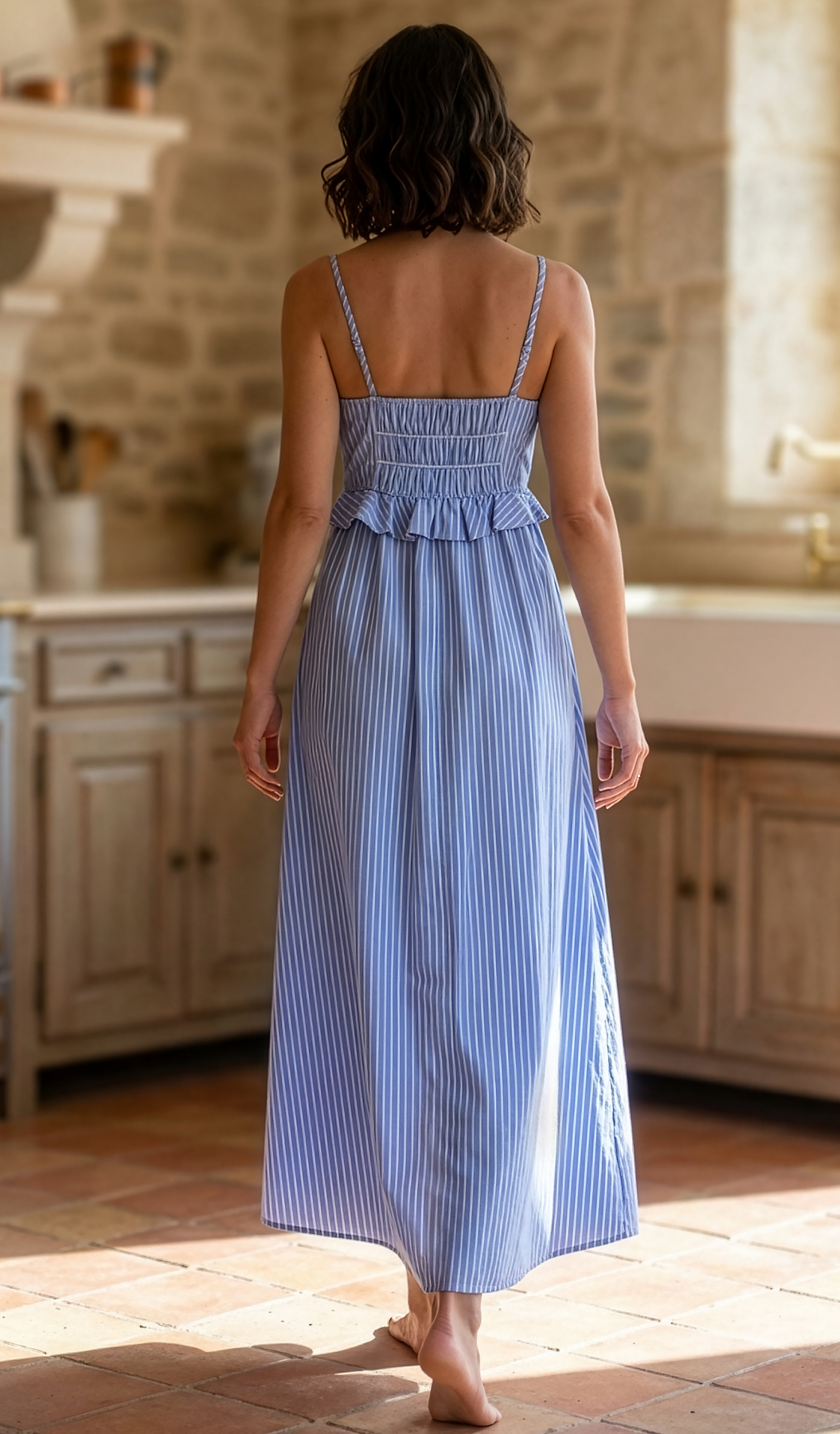 The full length sister gown of our Isabelle, the Sophia also has an adjustable tie under the bust for maximum support with a ruffle empire waistline.