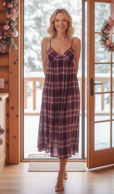Olivia Nightgown - Rayon Blend in Purple Plaid