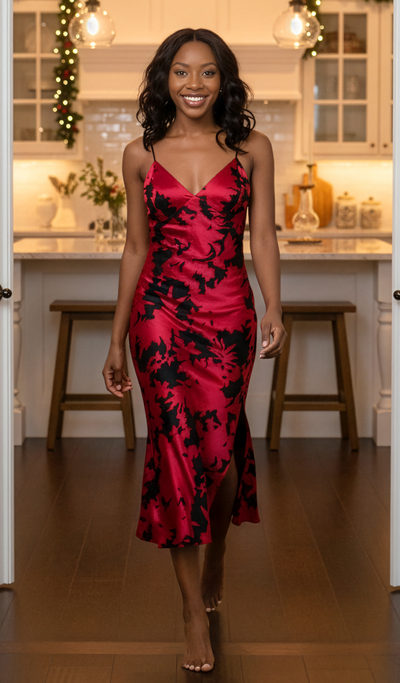Sloan T-Back Slip Dress - Rouge Poly Satin