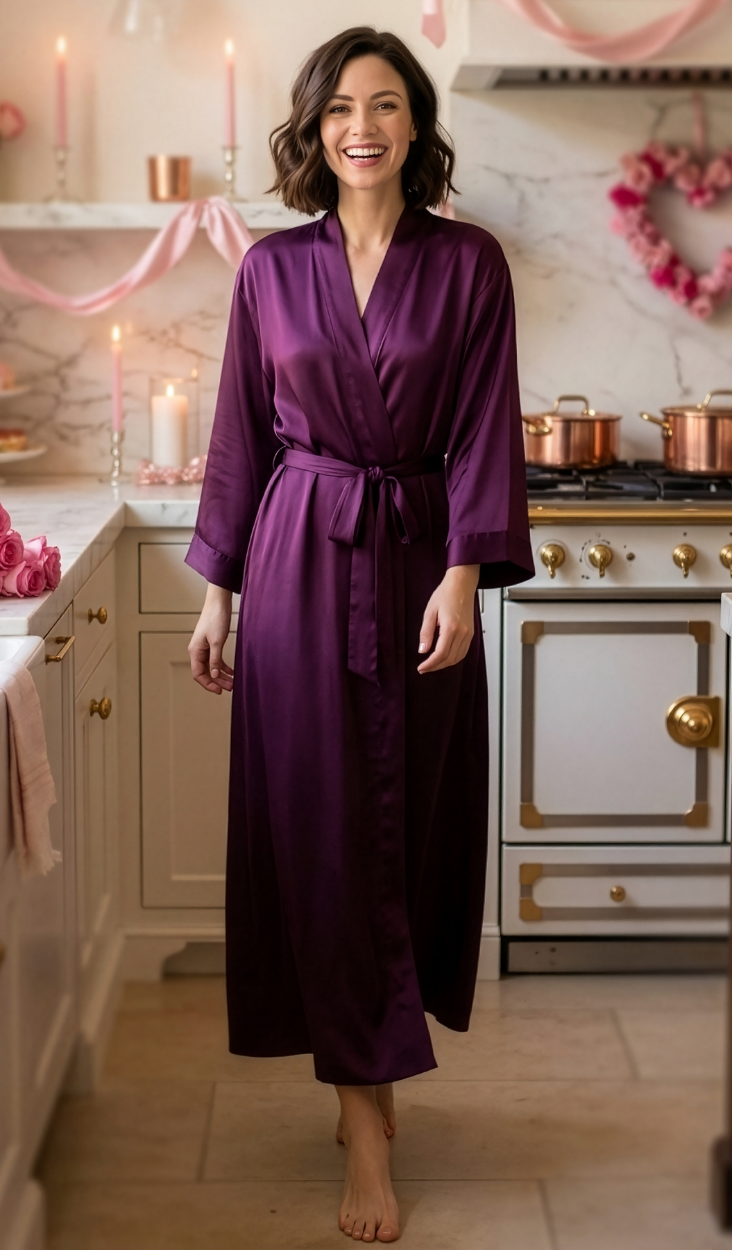 Feel the luxury of this smooth, satiny robe designed in an elegant longline fit with a waist-defining tie.