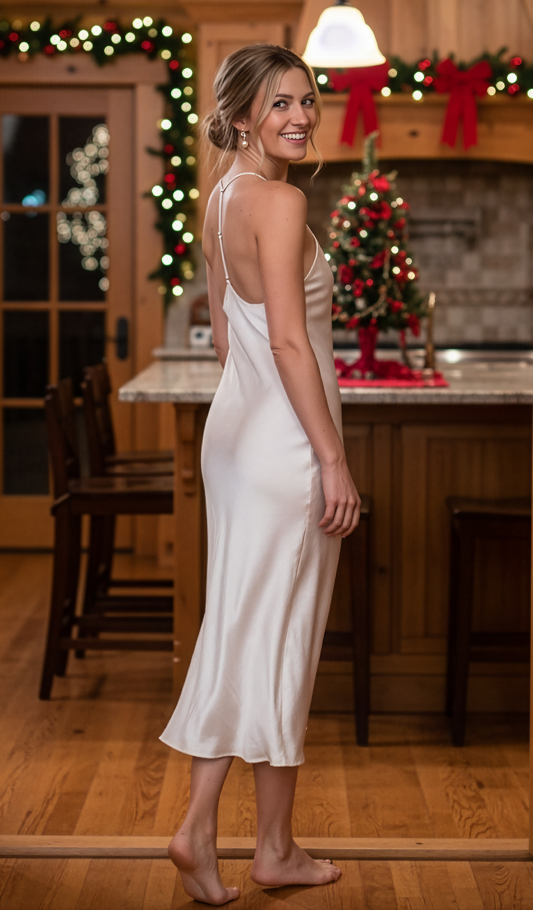 Sloan T-Back Slip Dress - Pearl Poly Satin