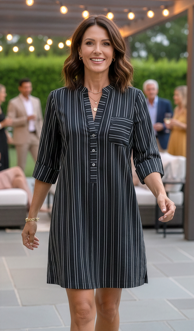 Claudine Tunic - Black / Silver Stripe