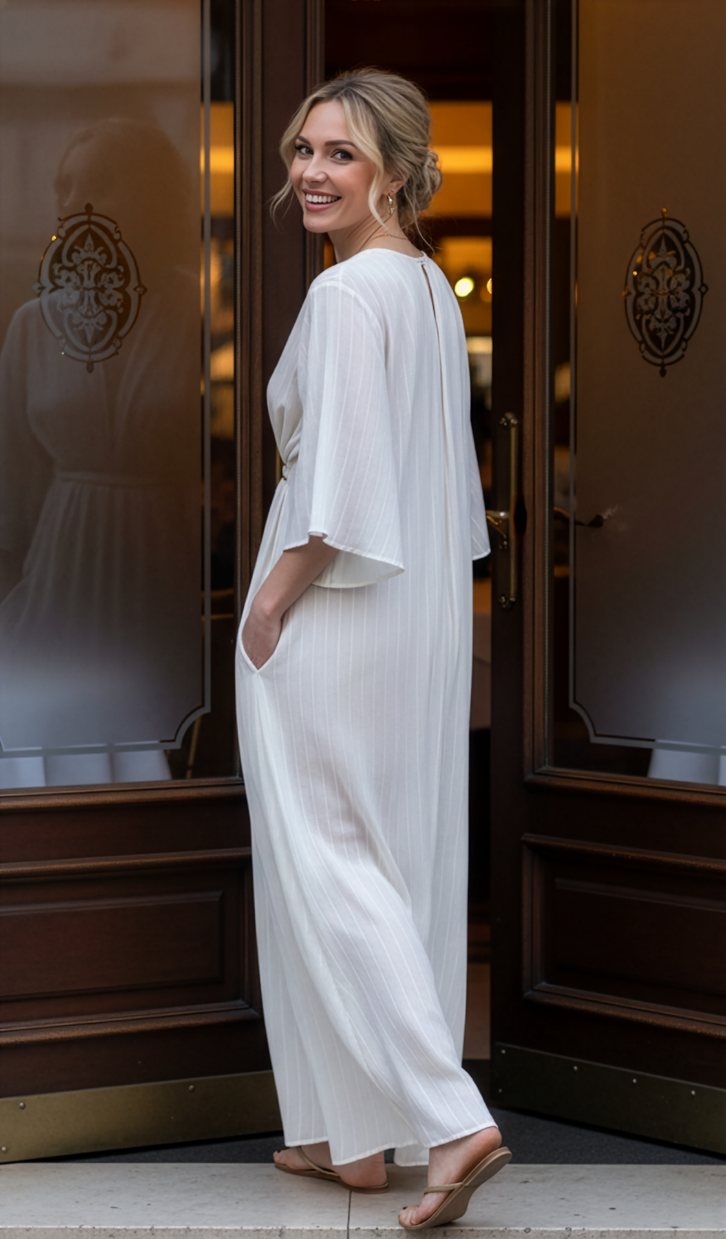Coco Caftan - Cream Lurex Goddess Stripe