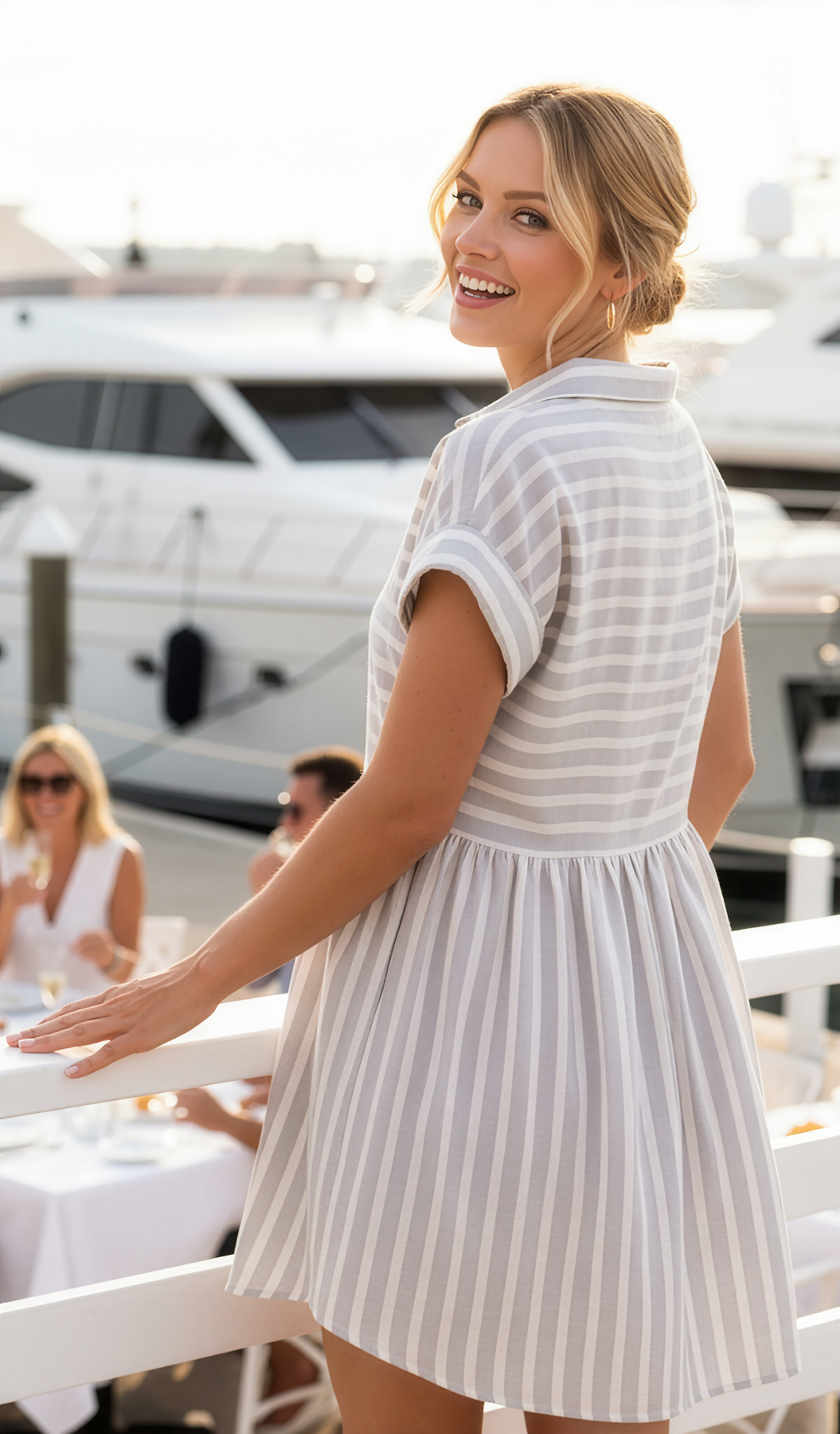 Spread collar with partial button closure adorns this short-sleeved tunic dress, boasting an A-line silhouette and mini length. Wear it as a short dress or as a tunic with pants or shorts.