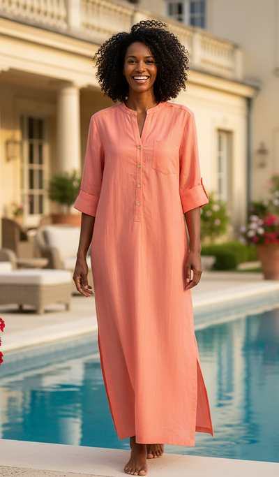 Tracey Caftan - Strawberry French Crinkle Cotton