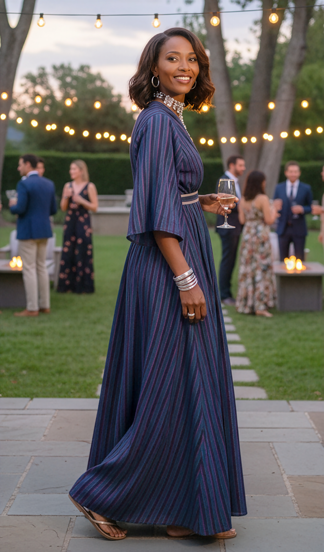Stunning deep v caftan featuring empire tie back. Tie back can be tied hidden inside behind the back or visible on the outside.