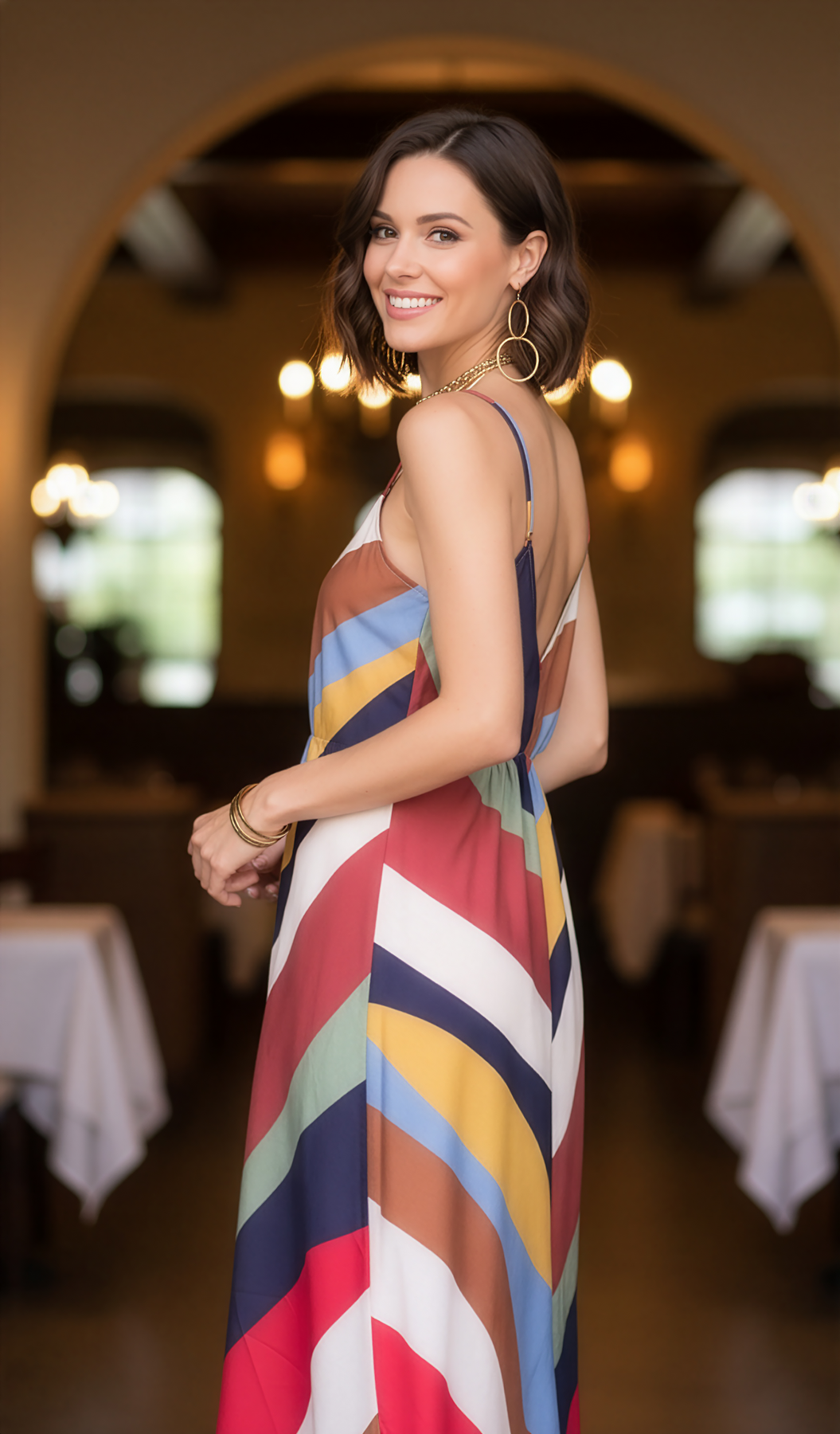 Effortless cotton silk Debbie popover dress featuring adjustable straps and shirred back for better fit.