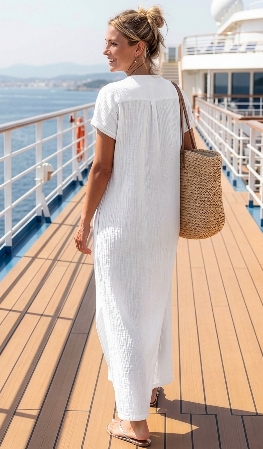 Stacey Caftan - White Cotton Bubble Gauze