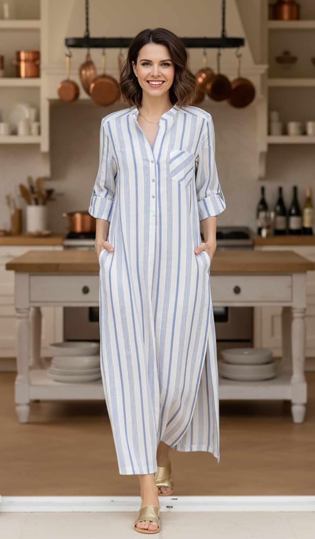 Our all-time best-seller the Tracey Caftan is easy and chic dressed up or down. With a plunging deep V, effortless silhouette, button option sleeves, and high side slits the caftan is sure to wow both at home, around the pool or on the beach.