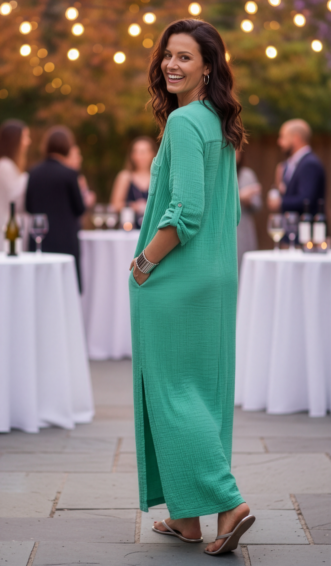 Tracey Caftan - Malachite Cotton Bubble Gauze