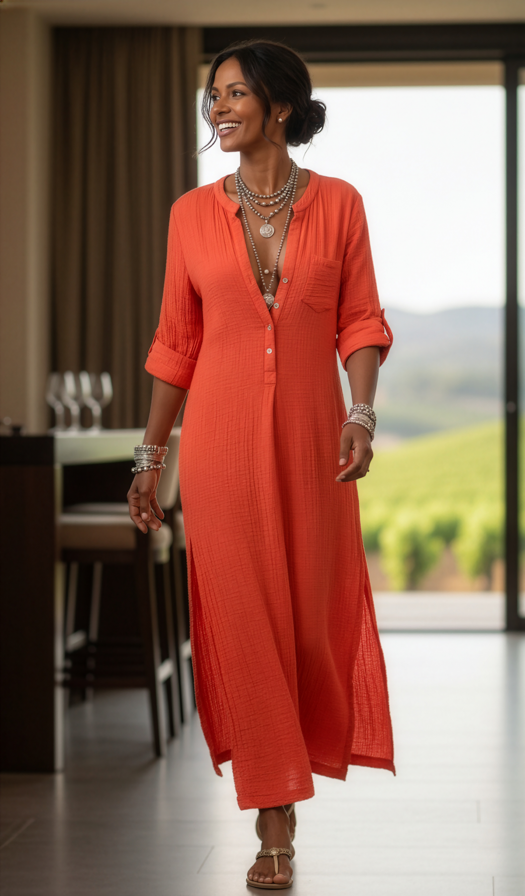Tracey Caftan - Satsuma Cotton Bubble Gauze