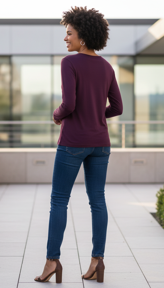 A smooth, clean-lined crew neck gets an extra touch of polish in a fluid stretch knit.