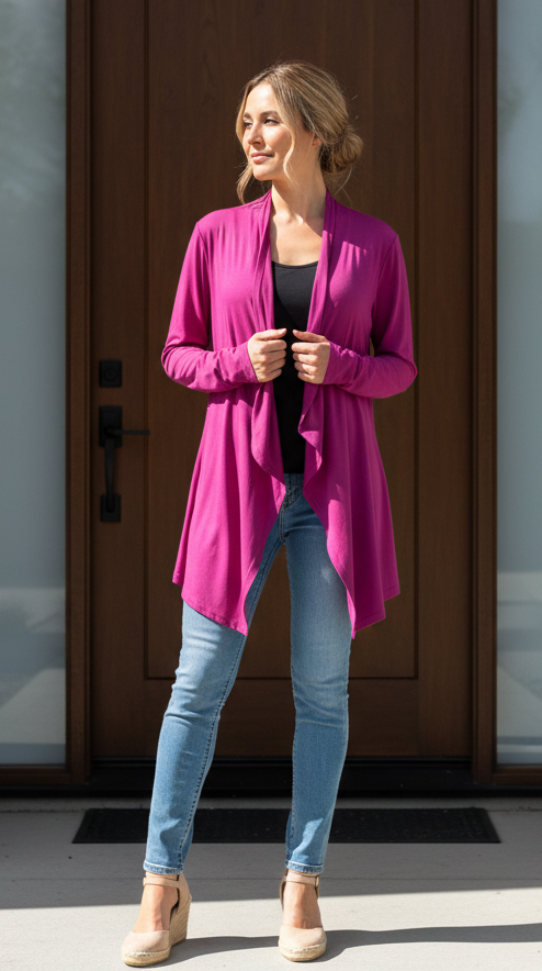 This drapey knit cardigan with a scarf collar is lightweight and ultra-stylish. Fit: this style fits true to size. Open front. Long sleeves.