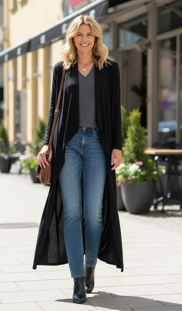 Tie-dye is back in! Level-up your style in this soft, floor length duster with a draped front and bright contrasting colors.