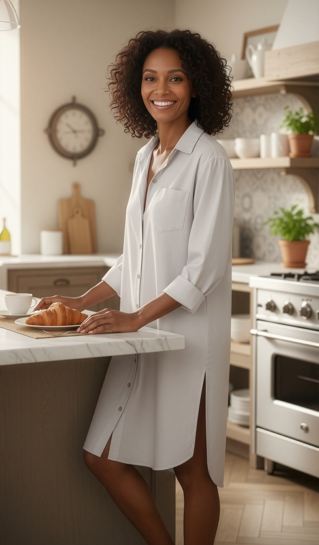 Luna Sleep Shirt consists of long sleeves, high slits and a pocket.