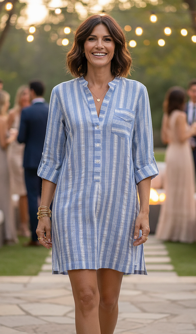 Claudine Tunic - Blue / White Variegated Stripe - Last Pieces Size S & XL
