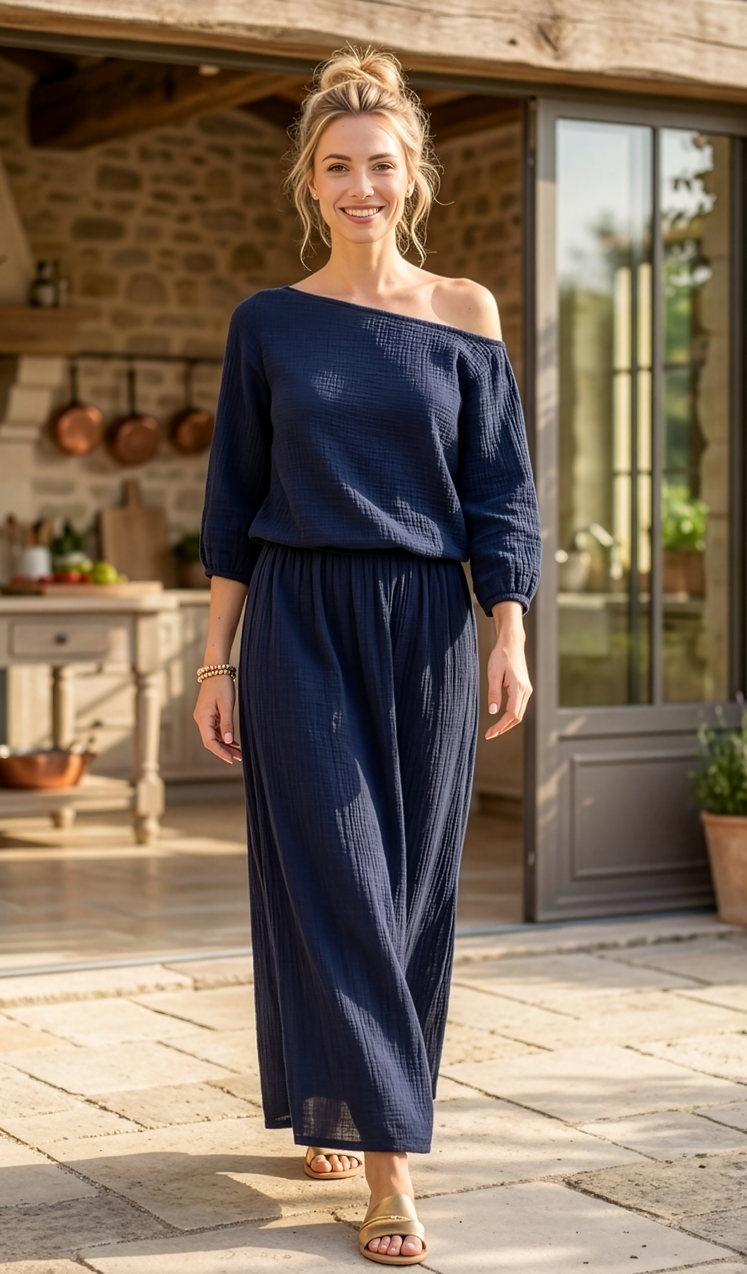 Swank slip on skirt with high stem flattering side slits. 100% cotton crinkle gauze. Perfect for warm days and nights! Great swim cover up too!