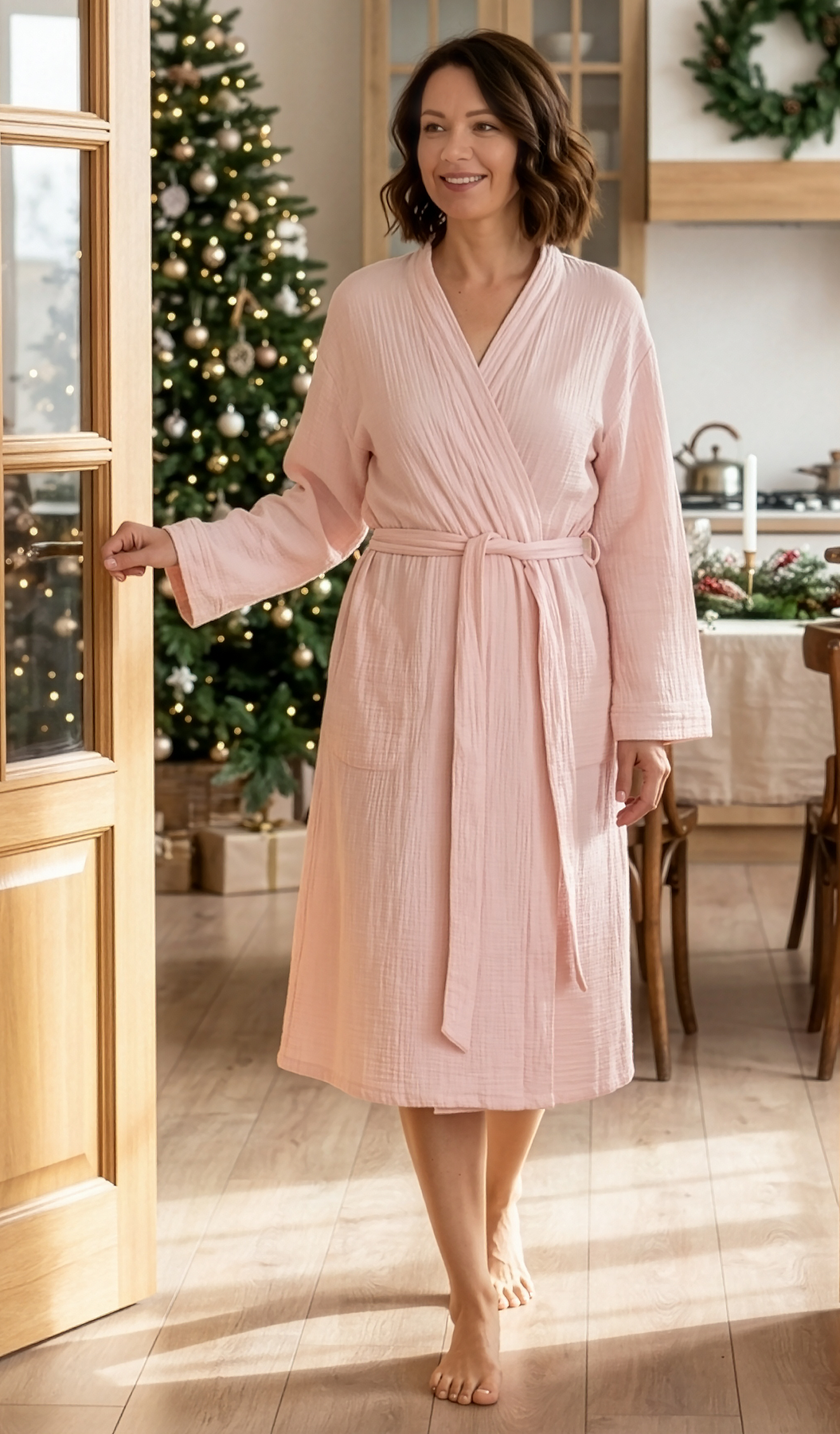 Stay in for the evening wearing this lightweight cotton gauze robe designed in a longline silhouette.