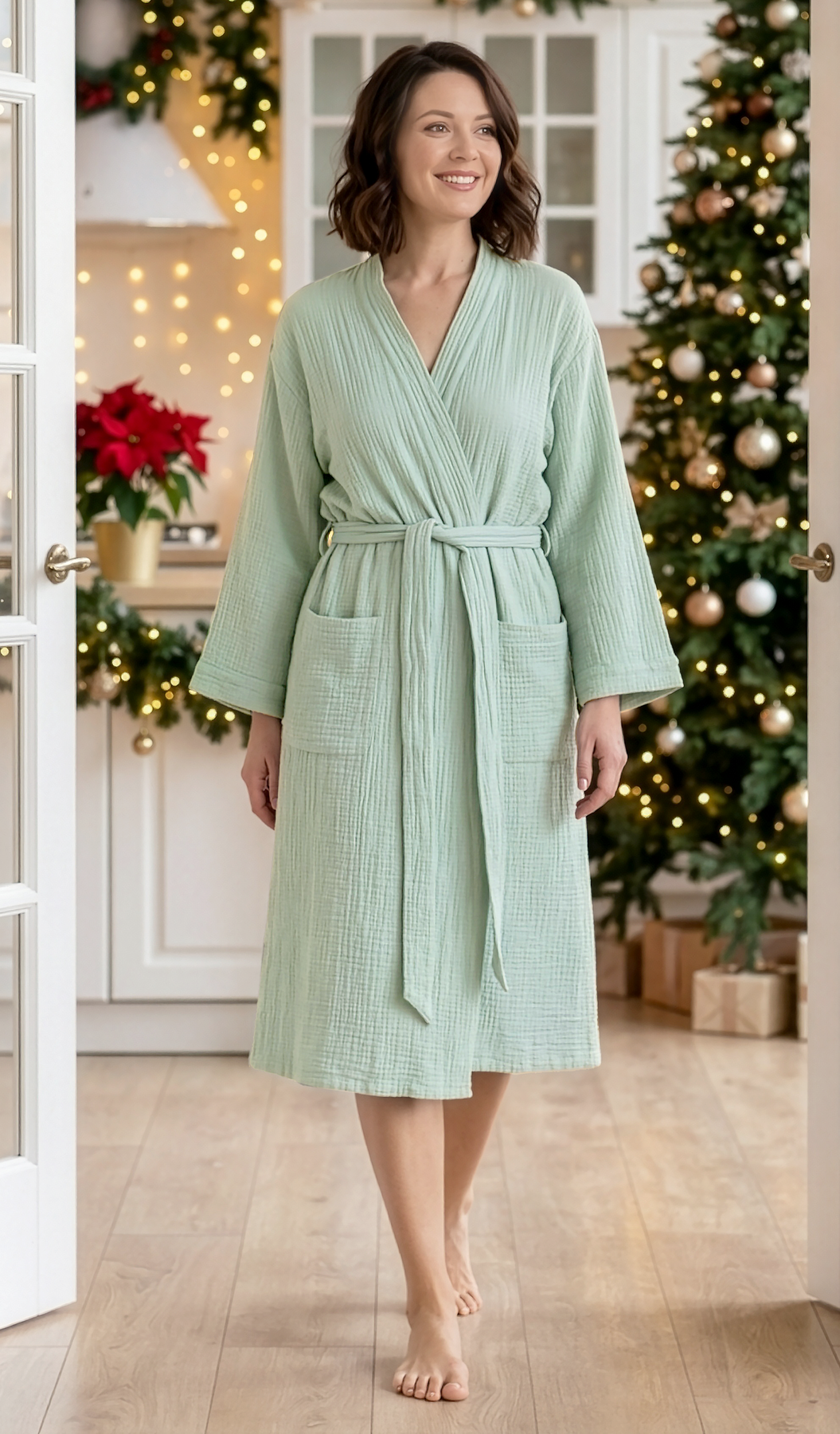 Stay in for the evening wearing this lightweight cotton gauze robe designed in a longline silhouette.