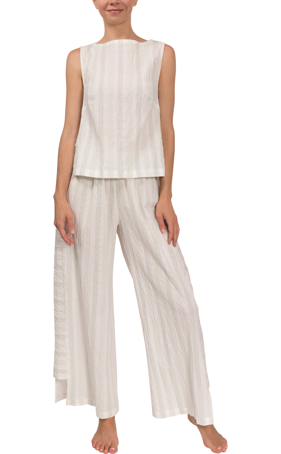Panel insets and French Crinkle cotton, elevate these lightweight cotton pajamas featuring a boxy, sleeveless top and wide-leg bottoms.