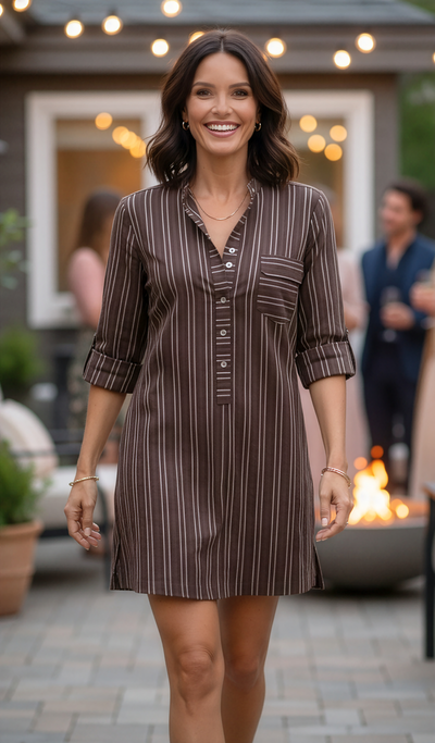 Gina Tunic Dress - Charleston Grey Cotton Linen Stripes