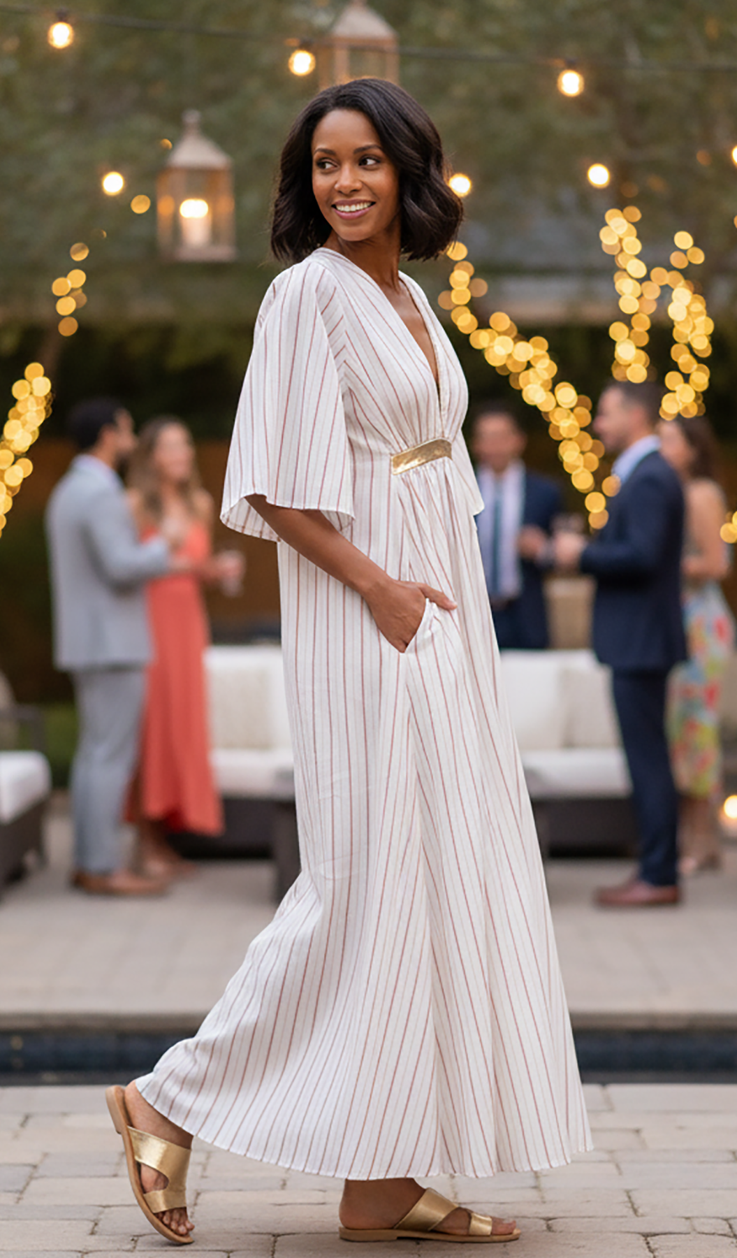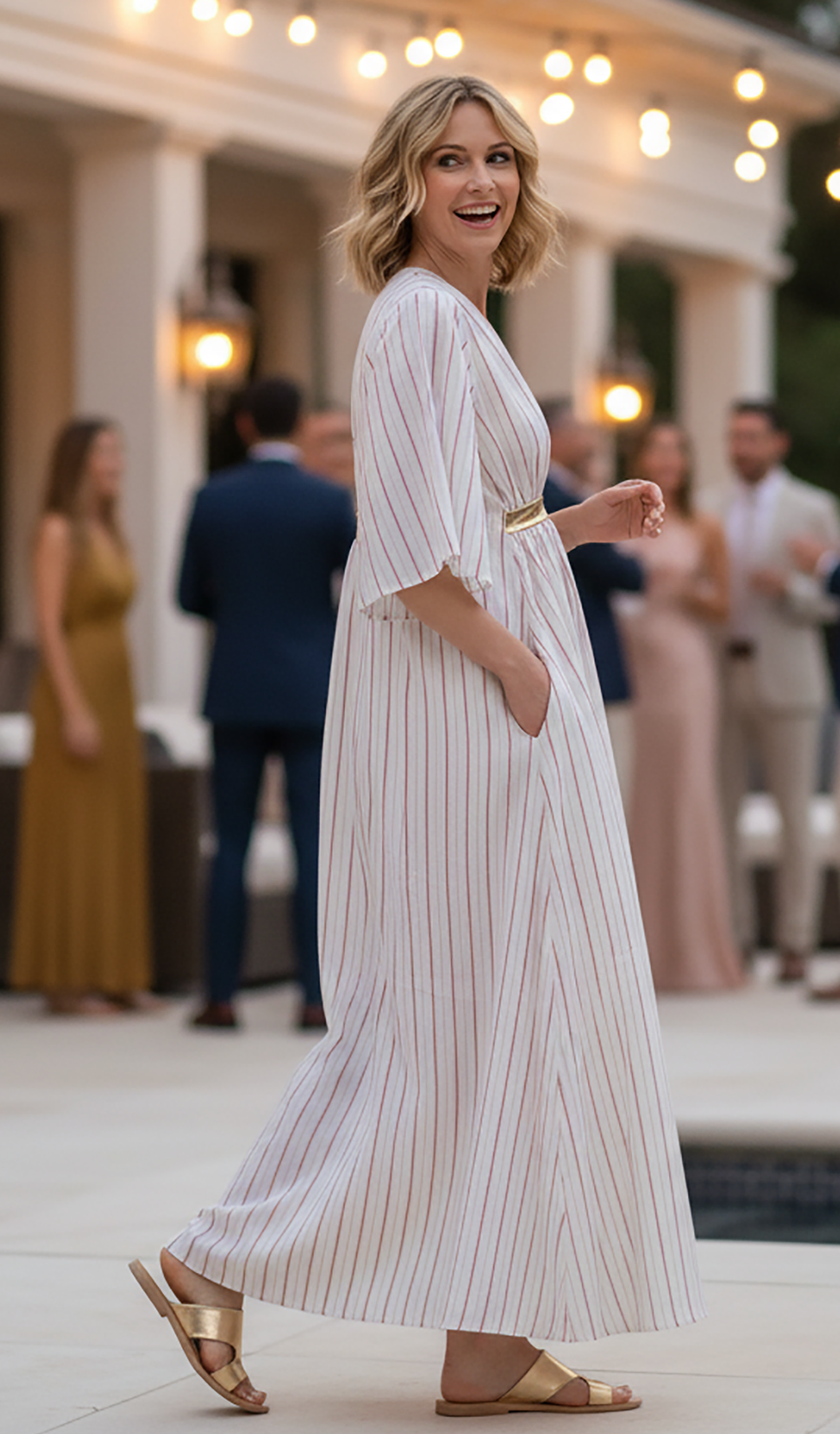 Made in our effortlessly show-stopping cotton lurex fabric in 2 tones of Lurex: Gold & Rose Gold. This Coco Caftan is outfitted with gold trim, and boasts a loose flowy back.