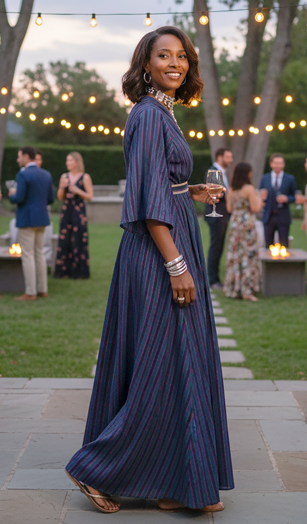 Stunning deep v caftan featuring empire tie back. Tie back can be tied hidden inside behind the back or visible on the outside.